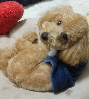 少し気にしてはいるものの、犬とのすれ違いの際も、リードをひっぱることなく歩くことができ、インターホンや掃除機にも吠えることが格段と少なくなりました。また、こたろうは、体格の割に体重が少なく、触ると骨格がわかるほど痩せていました。便の回数も多く軟便で食糞もあり、動物病院に相談しても変化はみられませんでした。横地先生に相談したところ、こたろうは様々なことに気をはっていて常に精神的に緊迫しているとのこと。それまではゲージで生活していましたが、クレートにしてあげたほうがよいというアドバイスでした。その日から早速クレートに変更しました。ゲージでの生活のときは、少しの物音や、飼い主の動作一つ一つに反応し、ゲージ内をウロウロしていましたが、クレートにしてからは、落ち着いて、伏せをしていることがおおく、夜もよく寝ているようでした。そして、数日後には、今までフードをかえてもサプリを与えても変わらなかった便が硬くなり、食糞が少なくなり、見た目もすこしふっくらとしてきました。体重も増え、今までいかにこたろうがエネルギーを消費していたのかがわかりました。
